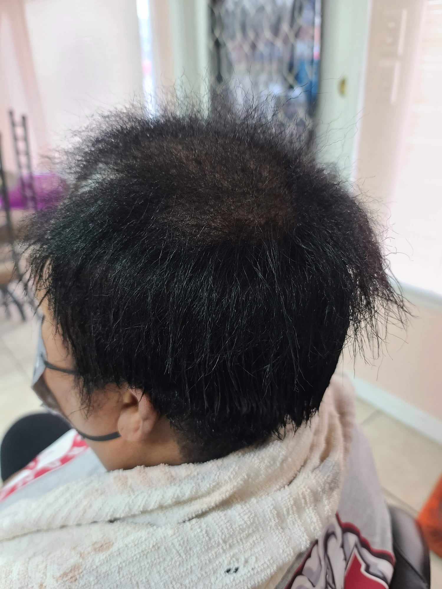 After Kay's Touch of Class rice water treatment, the clients' hair has begun to grow in areas where it was completely bald. The treatment has kickstarted the hair-growing process.